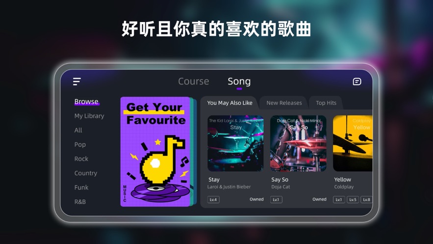 2. 架子鼓曲谱库:软件内置了大量的架子鼓曲谱,让用户可以自由选择自己喜欢的曲子进行练习。