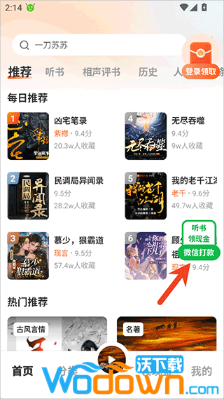 通过听书、签到、完成任务赚取现金或积分。