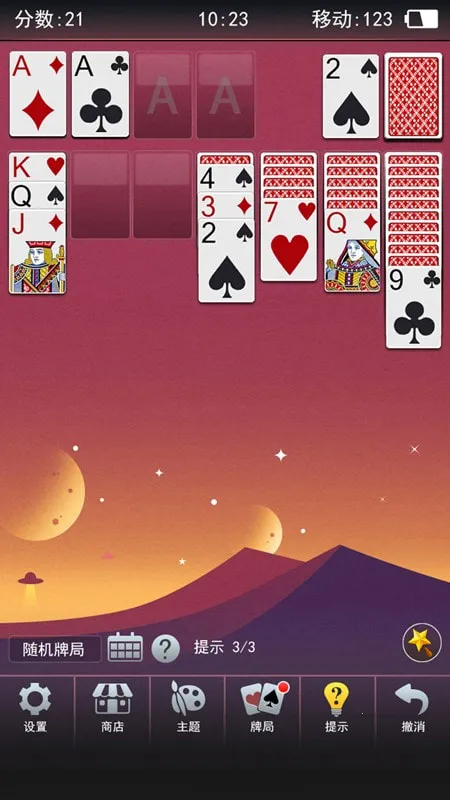 3. 有提示撤销和洗牌功能,多样背景卡牌可自定义外观。