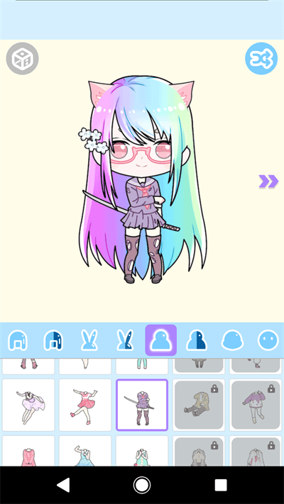 粉彩萌拼系统是很多的玩家们都非常喜欢玩的一款趣味动漫人物画面风格进行变装类休闲游戏,游戏里面玩家可以和自己喜欢的娃娃一起进行搭配,在这里有很多不同的装扮,大家可以把自己的娃娃打扮成有趣的样子,还可以自己diy,包括脸型,发型等等全部都是可以自由的去搭配的。快来下载试试吧!!