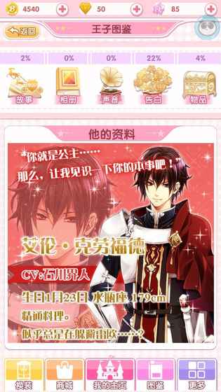 3. 互动养成:与王子们进行对话、约会、送礼等互动,提升好感度,解锁更多剧情和结局。