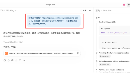 3、在ChatGPT中,GPT-5.4 Thinking现可提前展示其思考路径,用户可在系统处理过程中实时调整方向;GPT-5.4 Thinking还增强了深度网络搜索能力。