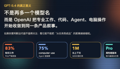 1、GPT-5.4 在处理需要长时间执行的复杂任务时表现更好,具体来看,包括持续数小时的工作流程等场景。