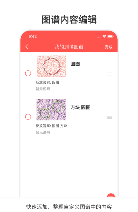 可对红绿色盲、色弱、全色盲等常见色觉问题进行初步自测。