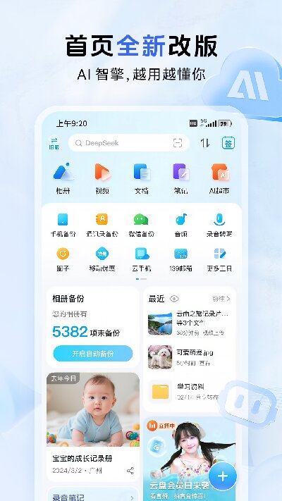 2.资料备份的功能非常的强大,拥有强大的存储空间,轻松一键即可将各种各样的资料上传到云端进行存储备份。