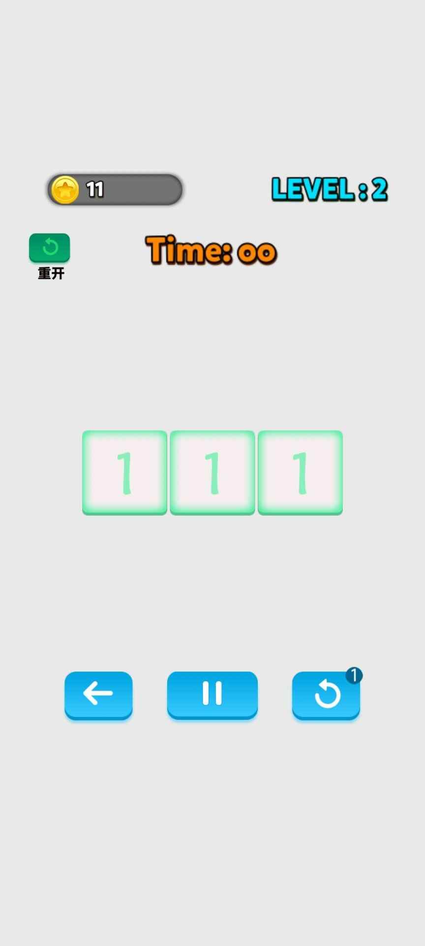 1. 选择关卡开始游戏,每个关卡都有一个初始数字。