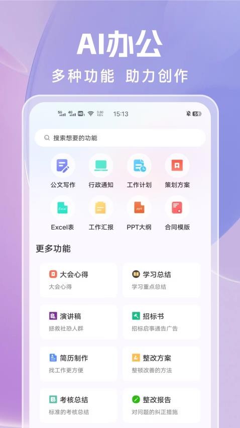 3.支持多种不同类型的写作功能,不仅仅可以写论文,还可以写工作报告,写工作总结,写工作计划,写策划方案。