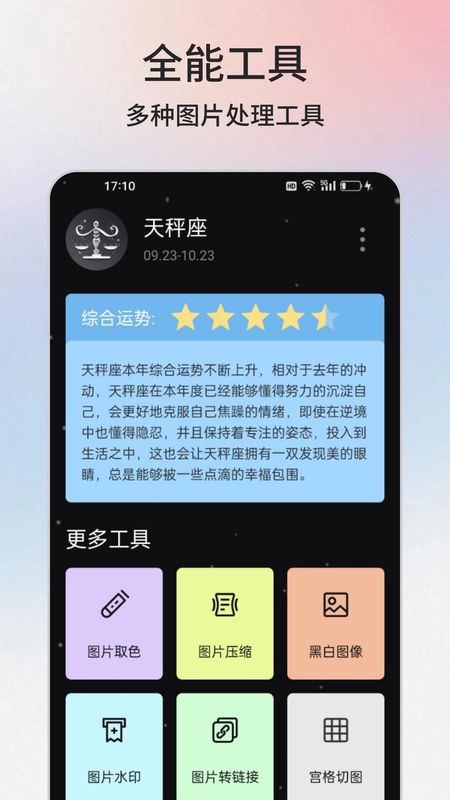 1.内置了贴心的图片取色功能,可以将手机里的图片颜色快速提取出来。