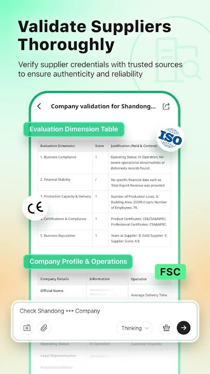 自动核查供应商资质、产能、信誉,输出合规评估报告,降低采购风险。