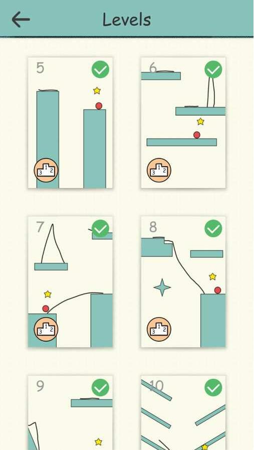 1.在游戏场景之中画出辅助的线条,让你能将小球滚到星星的位置完成挑战;