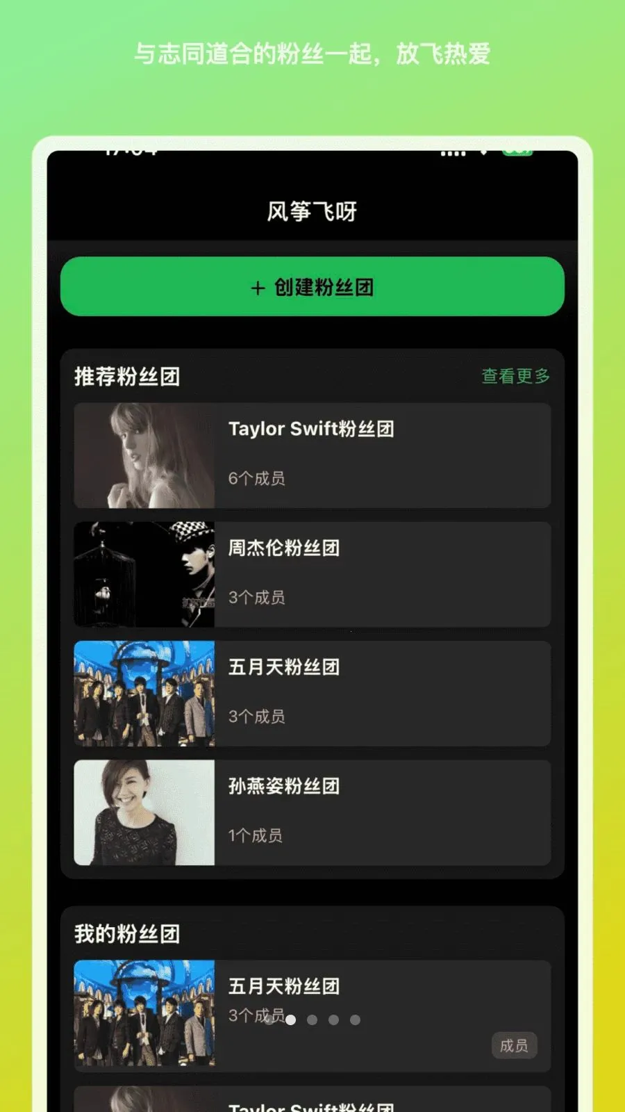 风筝飞呀最新手机版是音乐同好社区,在这里音乐如风筝自由飞翔。1.1.9版本亮点多,能沉浸式探索艺人动态,有专属粉丝阵地,可记录音乐日记,还有线下活动集结,视觉体验极致,让热爱有迹可循。
