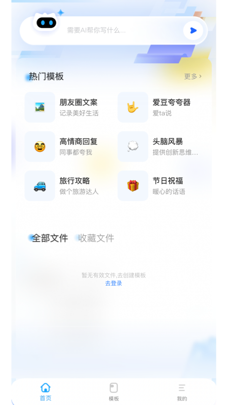 2. 写作模板库:提供多种写作场景和风格的模板,供用户选择和参考。