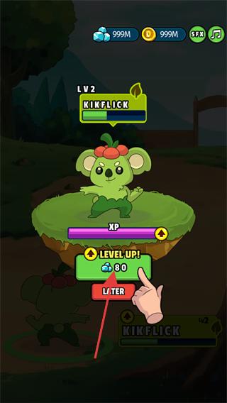4、对战后【KIKFLICK】触发【LEVEL-UP】,点击【LATER】按钮暂存奖励,继续游戏流程。