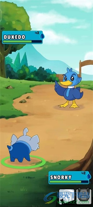 3、敌方行动后,再次点击技能按钮,让【DUXEDO-lv2】继续攻击【LAVAPEDE-lv1】。
