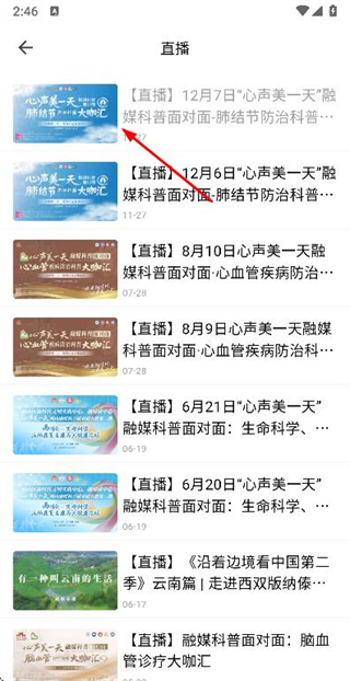 2、在视直播列表页面点击目标直播,进入该直播播放页面。