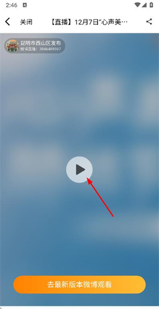 3、在直播播放页面点击播放按钮,开始观看该直播回放。