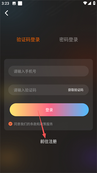 3、在登录页面点击前往注册选项,进入注册页面。