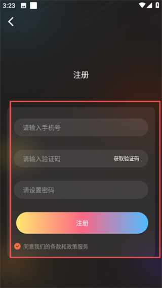 4、在注册页面填写信息并勾选协议后,点击注册完成账号注册。