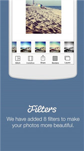 8lnstasize相机这是一款用起来非常顺手的拍照类型手机APP,该款软件界面简洁,功能强大,能为用户提供电影级的专业滤镜,新颖的创意贴纸和边框,同时还拥有极其简单又强大的触摸调整功能,只需通过简单几个步骤,即可完成照片的美化。此外,在Instasize最新版本当中,用户还可以给你的照片增加滤镜、背景图案、文字等特效,编辑好的照片还可以直接上传到社交平台,并且无需剪裁,非常方便。有需要的朋友不妨下载试试吧!