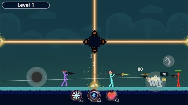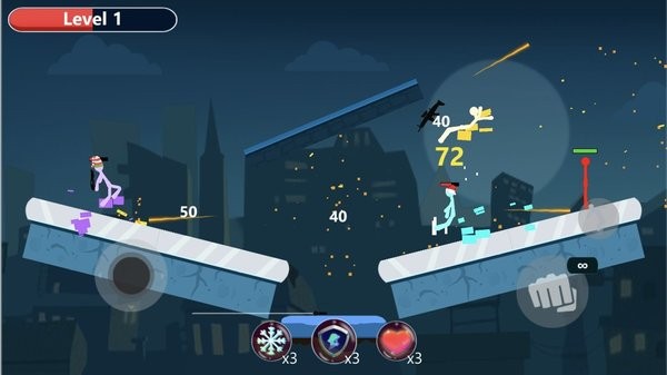 火柴人题材的冒险闯关游戏,玩家自己需要控制良好的操作协调能力,需要不断地通过困难,玩家则需要操控自己的角色在这款游戏中进行挑战,操控着角色只有攻击,跳跃,无需瞄准,购买更多的武器装备,强化属性,塑造了个性十足的火柴人。