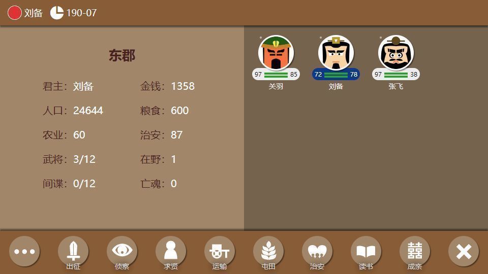 【兵力】战斗会消耗兵力,可通过征兵、调兵和增援等恢复兵力