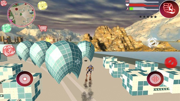 哪怕是高度发达的未来,也会有罪犯的存在,在这个科幻感十足的未来都市,你可以在里面为所欲为,但是只要上了一颗星,就会有警车机甲人追你,前面赤手空拳的你肯定打不过,注意躲开他就好了,等你赚了足够的钱,买了高级武器,就可以和他们PK了。