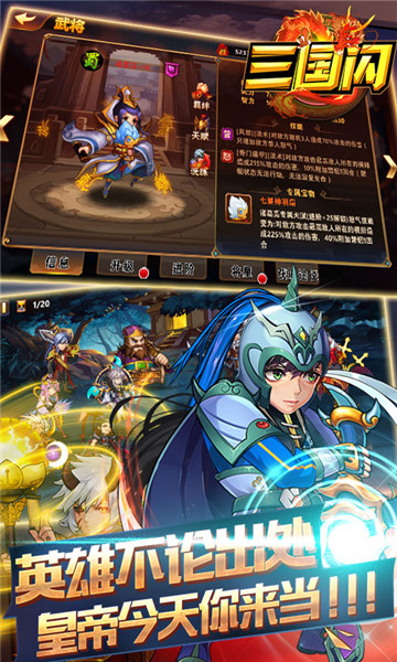 一款Q版放置类卡牌策略养成游戏!海量的三国人物,轻松的挂机战斗,让你横扫千军荡平三国!Q版人物,经典回合战斗,技能克制、缘分羁绊、速度与抵抗等丰富的属性彰显顶尖卡牌的策略性。