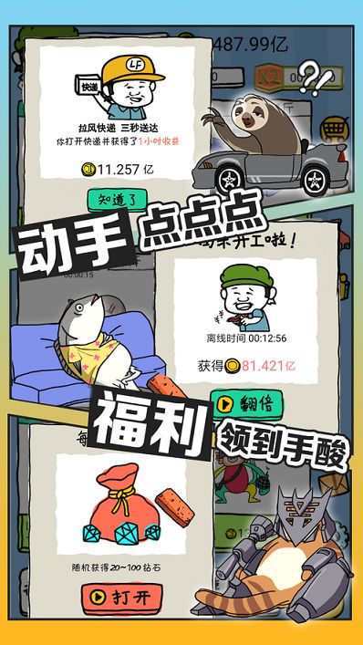 2、卡通且充满着搞笑趣味风格的游戏画面和场景,不断地扩大你的资产;