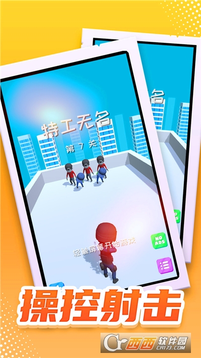 特工无名是一款非常好玩的动作类射击游戏玩家在游戏中还可以滑动屏幕来控制子弹的方向,每个关卡都有不同的射击任务等你来挑战,而且卡通的角色形象让大家玩起来也更加舒适,完全没有任何的广告弹窗,同时游戏中还有丰富的关卡和挑战模式等你来体验哦。