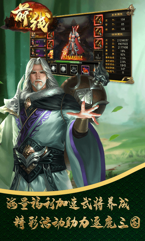 前线满V版是一款以古代三国时期群雄争霸为题材的策略类手机游戏。游戏复刻了三国魏蜀吴群雄割据三国鼎立的全盛时期,在游戏中挑战其他阵营,能够获得物资来建设城池,奇谋战略等。