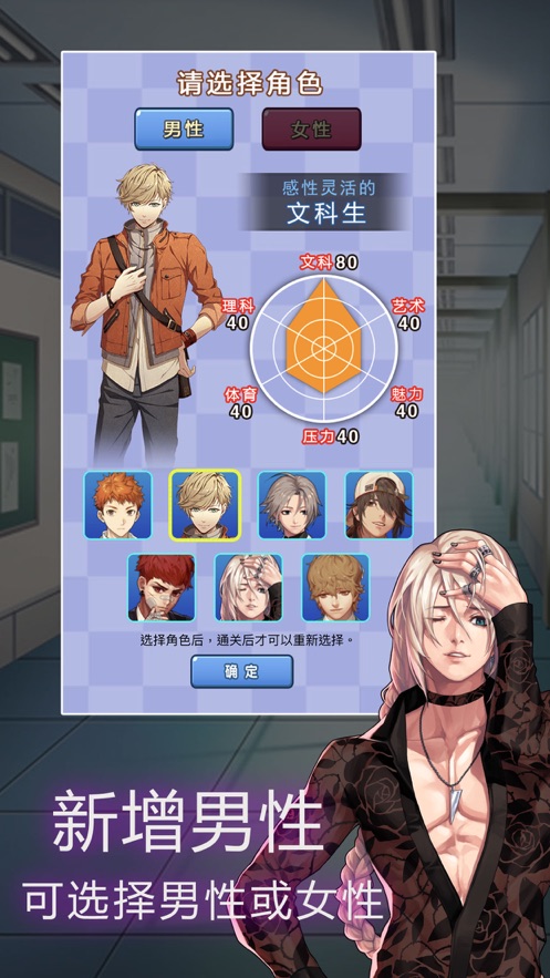 3、以在游戏里面自由选择自己的角色然后进行换装,你将可以在游戏内体验到最真实的校园生活。