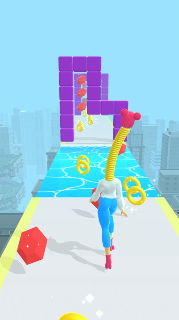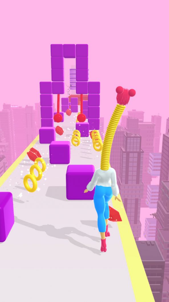 脖子我最美下载是一款非常好玩的休闲趣味魔性跑酷游戏,操控游戏中的小姐姐收集关卡中的颈环,收集的越多她的脖子就会越长,一路上也会有很多的方块障碍,需要你灵活的躲过。