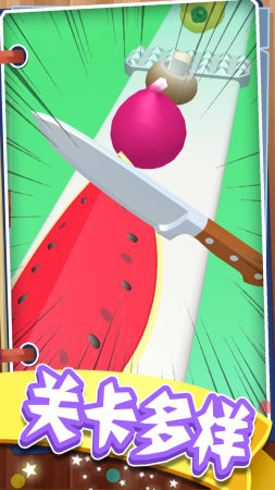 简单轻松的操作玩法,点击切割,切碎一切的水果,体验新颖的游戏玩法。