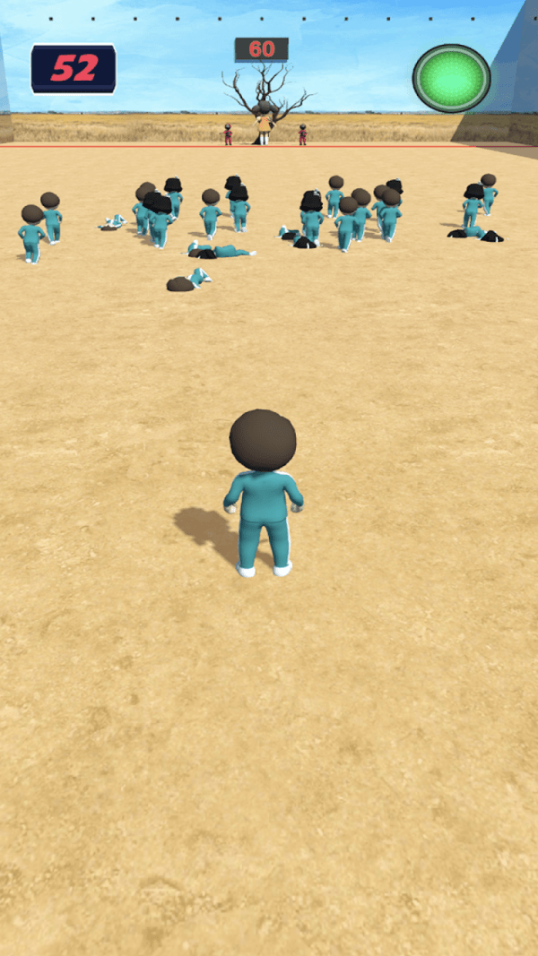 1、鱿鱼游戏人偶游戏中真实还原电 视剧的场景,绿灯时运行,红灯时停止;