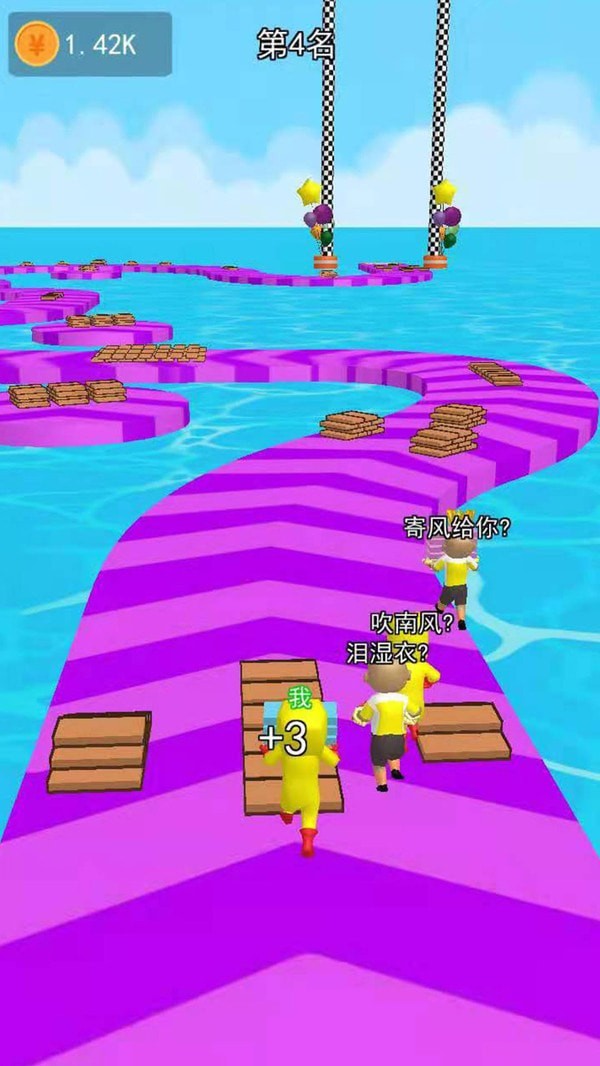 一如既往的卡通风格,每个人物形象都是那么的熟悉,这很符合VOODOO的游戏设计风格;游戏玩法轻松简单,上手就会,这个游戏占用手机内存小,玩家需要控制橡皮人在各种平台上前行,游戏画质和体验感相当不错,你需要搬砖进行冲刺,而且这款游戏中玩家可以尝试进行搬砖搭桥,注意收集途中的砖块补充自己的砖块数量,挑战各种场景关卡。