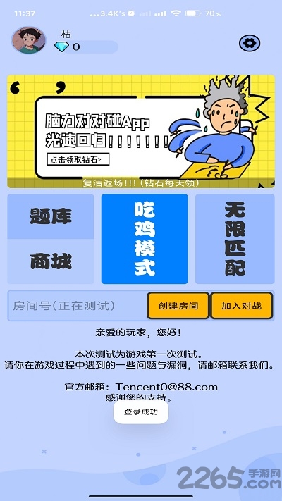 ·支持创建房间开启答题新比赛,输入房间号的所有玩家都可以加入你的对战