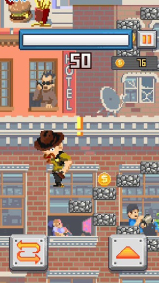 点击即可人物进行挑起,每次走动都是往上走,还可以进行转身呢,不过千万别掉下去了;