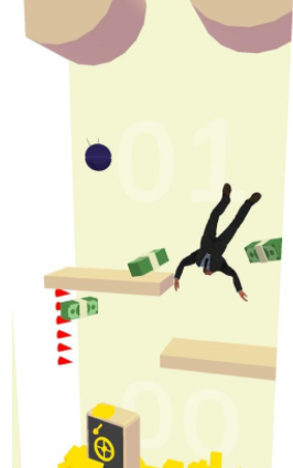 1、玩家可以控制西装男从高度跌跌撞撞地坠落,尽可能多的收集途中的钞票;