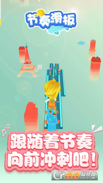 节奏滑板是一款非常新颖好玩的音乐节奏酷跑小游戏。游戏中不仅考验玩家的反应能力和手速,清新柔美的游戏画面,舒适和动感的音乐更能令玩家着迷。各种萌萌可爱的人物角色、多种炫酷的滑板并挑战各种神奇的路面,带给玩家不一样的音乐游戏体验。还在等什么,赶快来试试吧!