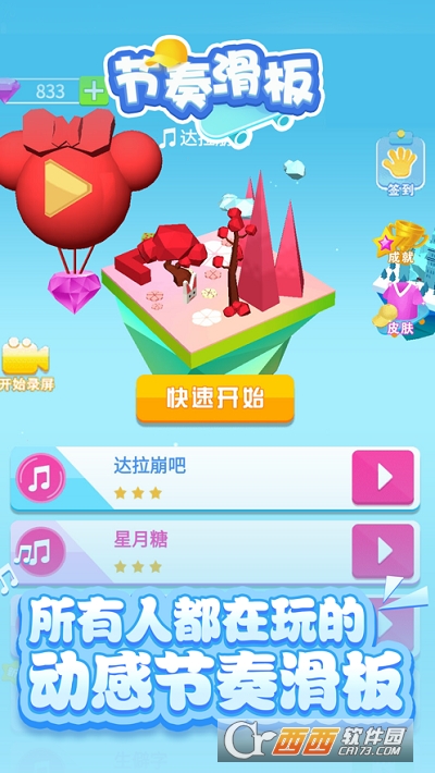 节奏滑板是一款好玩的动作挑战游戏游戏打造了高清细腻的卡通3D画面场景,魔性操作,各种独特风格的角色等你来解锁,非常值得尝试哦。