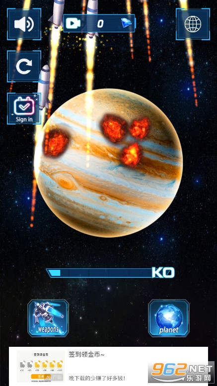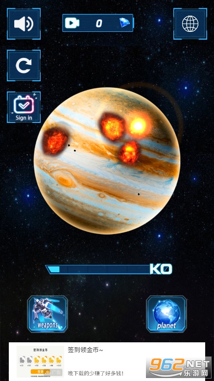 趣味的摧毁星球的游戏,12种效果不同的武器任意使用,还可以组合使用,武器都是解锁的可以免费用,还有着多个星球可以摧毁体验,可以自定义星球的颜色等,喜欢的朋友可以下载试试。