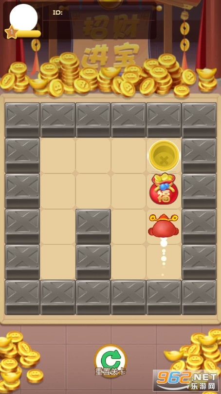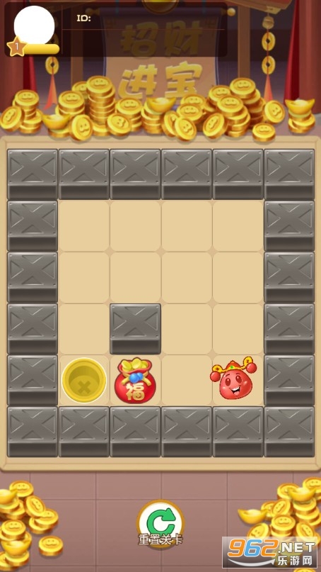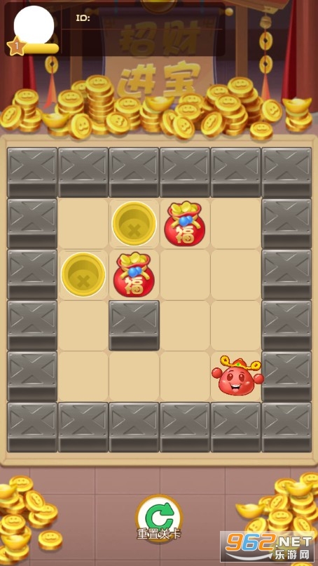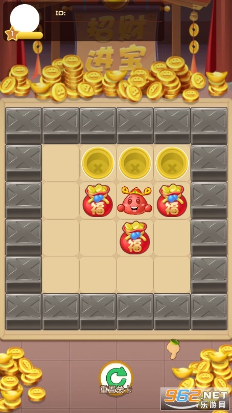 极具创意好玩的推箱子小游戏,玩法还是经典的玩法,但是风格却发生了一些变化,将原本的木箱子变成了大福袋,里面装满了金元宝,现在需要我们马上动手推动福袋箱子,完成一系列的关卡挑战,获得丰厚的奖励。