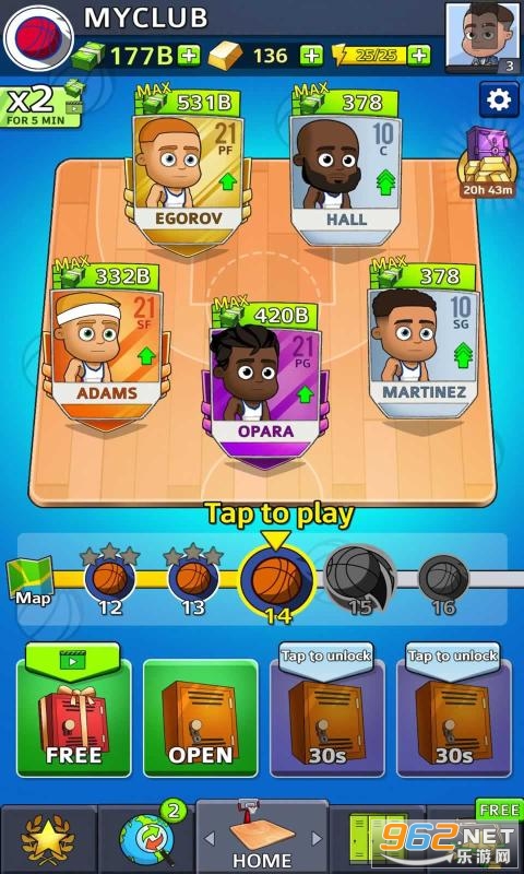 闲置五人组Idle Five是一款Q版卡通画风的篮球放置休闲类游戏还有很多的趣味的战斗等待着玩家的挑战,当玩家游戏级别升高后可以解锁很多好玩的内容,你可以随意招募5名球员。
