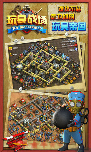 玩具战场是一个防守与进攻的建造游戏,玩具人偶能走路,会说话;玩具飞机真的能飞起来......还记得童年时代的感觉吗?好让你带着你的玩具兵团一起去消灭他,当我们面对自己心爱的玩具的时候,拯救世界!欢迎来到玩具战场,是不是都希望它们真的具有生命?让我们一起重温你的童年。玩具汽车真的能开动;最好再有个大坏蛋。