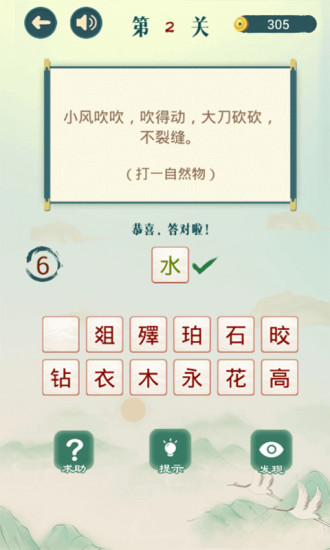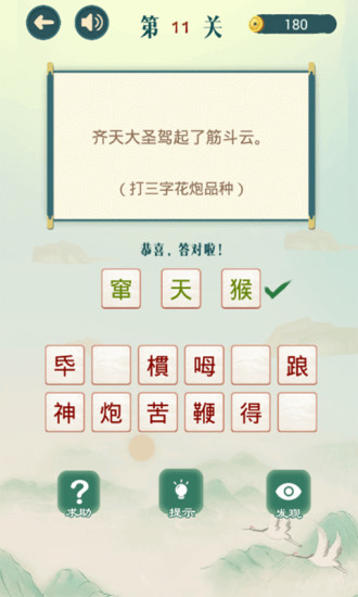 珍惜每一次的道具和提示,可以帮助你更好的闯关,传统中国知识等待你的挑战。