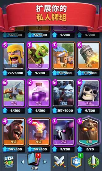 - 和clash royale家族一起研究配置并升级你收藏的卡片,其中包含多种你喜爱的部落冲突部队、法术以及防御设施
