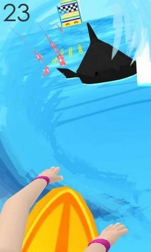 2、海上冲浪者游戏的海浪里有巨齿鲨和大章鱼以及海上礁石,你需要利用你高超的冲浪技巧躲避这些危险;