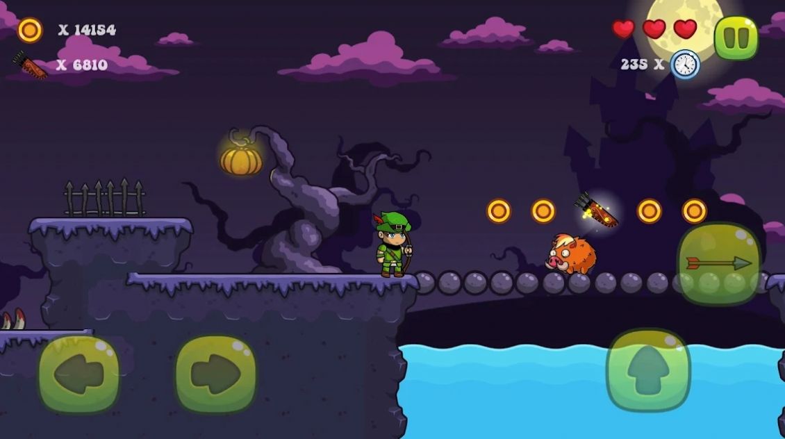 1、游戏中玩家需要通过奔跑、跳跃躲避障碍物,并使用弓箭设计路上遇到的敌人,非常考验玩家的反应力。