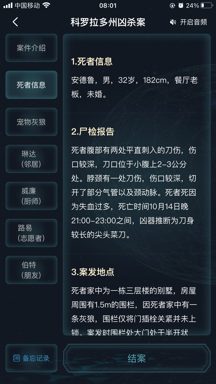8今天带来犯罪大师科罗拉多州凶杀案(附答案)下载解锁更多的内容玩法,成为这个侦探世界里的脑力达人,用智慧去解决所有难关。