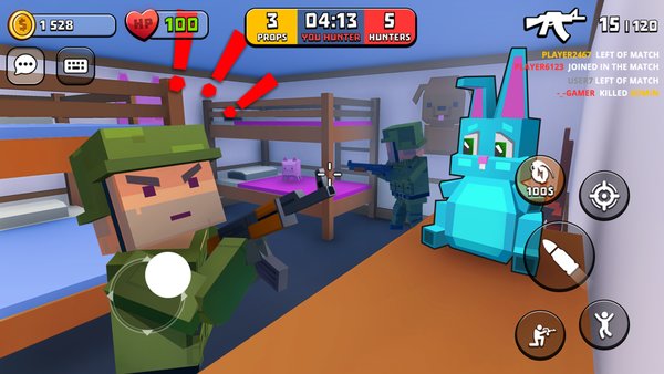 多人在线3D捉迷藏游戏.游戏中分为两个阵营:寻找与躲藏,躲藏者可以伪装成各种物品,同时可以使用皮弹和3D声音口哨诱导寻找者,寻找者只需在200秒内找到所有躲藏的玩家就可以获得胜利,游戏中玩家能体验到经典休闲世界的完美乐趣!